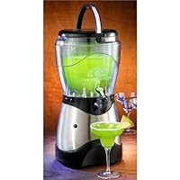 Mix up great-tasting margaritas in no time with this easy-to-use margarita machine. Just fill the unit with ice, margarita mix, and tequila; then, secure the safety lid and flip the switch. In a matter of minutes, the unit produces delicious, refreshing margaritas, daiquiris, or slushies--all of which can be dispensed via the front-mounted serving spout. The machine's ice-grinding/shaving motor delivers exceptional crushing power, while its insulated container holds up to 128 ounces of a favorite frozen drink at a time--it even has a handle for convenient transport to the next party. The 90-watt unit runs on A/C power, and its see-through lid and jar clean-up in a snap. Great for pool parties, barbecues, birthdays, weddings, camping, and more, the ETL-approved frozen-drink machine measures 10 by 10-1/2 by 19-2/7 inches and carries a 90-day warranty.