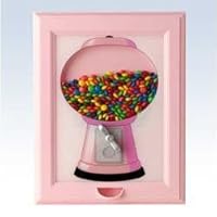This Pink Gumball Machine Frame is as thin as a picture frame and is a perfect way to add some sweetness to any room! This one-of-a-kind gift dispenses gumballs or candy right from your wall! Turn the knob to enjoy a delicious treat. A novel accent and fun conversation piece to any child's room! Gumball Machine Hanging Frame in Pink Features: