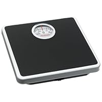 Analog dial scale white with black mat features compact platform rotating dial accurately measures weight up to 300 lbs. no other information is available