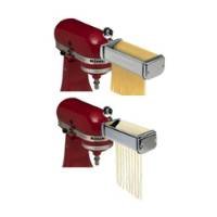Pasta Roller and Spaghetti Cutter SetHarness the power of the legendary KitchenAid Stand Mixer toroll sheets of pasta dough, create fresh lasagna noodles, or cut fresh spaghettior linguini. Nickel- and chrome-plated steel makes this an attractive anddurable set. Cleaning brush included.Pasta Roller: eight thickness settings on the pasta roller offer theversatility to prepare lasagna noodles, egg noodles for cutting, and much more.Enjoy the flexibility to create your own homemade pasta, experiment with recipesand try different noodle thicknesses to create your own special pasta dishes. Spaghetti Cutter: a fast and easy way to make your own spaghetti or linguini prepare sheets of pasta in your pasta roller, then the cutter makes itspaghetti or linguini. Made with durable nickel- and chrome-plated steel foryears of use. Nickel and chrome-plated steel construction For use on all KitchenAid household stand mixers Cleaning brush included