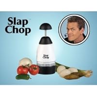 Food Chopping MachineMaking America Skinny, One Slap at a Time!As Seen on TVCleans Easily! Butterfly Opening to Clean Blades! No Changing Blades! Combine Food as You Chop! Rotating Stainless Steel Blades! Separates Outer Skin from Onions & Garlic! The More You Slap, The Finer the Food!The Slap Chop is your all-purpose chopper for all your chopping needs. Food processors are too bulky, and most kitchen slicer-chopper gadgets have too many parts. With Slap Chop, the more you slap it the finer it gets!Combine raw potatoes, mushrooms and green peppers, and in a matter of seconds you have a tasty and healthy breakfast with your eggs. Everyone wants more salad in their diet. Add carrots, celery and radishes, and with a few chops on your Slap Chop, instant salad. Make it finer for cole slaw and soups. Add tomato, cilantro, jalapeno and onions to make fresh salsa in a matter of seconds. You decide on what ingredients go in and how fine you want your salsa. It separates the skin from onions or garlic. For best results in removing onion skins, place half or quarter of an onion with the outer skin facing the cutting board. Nuts, chocolate and fruit toppings are chopped with ease. Use the cover to pour nuts on your desserts. Continuous chopping gives you finer nuts.Limited 10 Year WarrantySee Inside for details