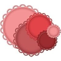 Coordinating with Standard Circles, these Decorative Elements Nestabilities feature a scalloped edge with a half circle cut out of each scallop.The cuts create the look of delicate lace. This five piece set nests for elegant frames or can be used individually, with stamped images or embellishments in the center circle.Spellbinders Nestabilities cut, emboss and stencil with a single die template. Approximate die template sizes are 1-5/8", 1-7/8", 2-5/8", 3-3/8" and 4-1/4".