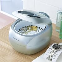 Ultrasonic Jewelry Cleaner and DVD Cleaner. No chemicals needed! Advanced soundwave technology uses plain tap water to remove dirt and tarnish, gently yet thoroughly, from delicate pieces. This chemical-free cleaning requires no special cleaning solutions or detergents and is kind to your valuables it s environmentally friendly, too. Ultra-easy, ultra-convenient. No scrubbing. No tedious trips to and from the jewelers. No expensive fees. Just fill the stainless steel tank with tap water and our ultrasonic cleaner will do the work for you! Use it whenever you want to see dazzling results in minutes. For jewelry, eyeglasses, watches and more. This versatile cleaner is perfect for any number of small household items that require special care jewelry, eyeglasses, watches, DVDs and more. A watch hanger and eyeglass basket are included to help you keep your pieces organized, and with five timed cycles to choose from, you can pick the perfect cleaning cycle for the quantity and cleanliness of your items. Order your worry-free, environmentally friendly Ultrasonic Jewelry Cleaner from Brookstone today!