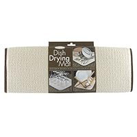 Garden Botanika The Original Dish Drying Mat is an attractive waffle-weave microfiber mat that is super-absorbent, dries fast and resist stains. Padded to protect countertops and dishes, plus stores easily. Great for use under a dish rack. Also machine washable. Dimensions are16 inches x 18 inches.