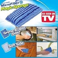 Microfiber Magic Sponge 5 Piece PackClean faster, easier and better without chemicals! Two sides of cleaning power- Grime buster side for caked on foods, sticky messes, tough grease, mold and mildew and soft textured side for spills, dishes,soap scum, bathtubs, scuff marks and more!Loosens, lifts and traps dirt, moisture and ultra-fine particles that traditional sponges leave behind.Healthier- reduces the need for chemical cleanersSaves money- On disposable sponges/scouring pads, paper towels, chemical cleaners and more. Use over and over. just toss in the dishwasher to clean!Great for:Kitchen Bathroom outdoors AutoSet comes with:4 x Standard Sponges (3.75" x 5")1 x Jumbo Sponge (4.5" x 6.5")