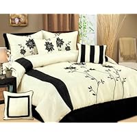 (More customer reviews)This comforter is definitely worth the price, although it is a tad scratchy on top. It is cream and black, not white as it looks in the picture. I painted my walls a fuscia color and this set looks great with the color. I would definitely recommend this set, 7 pieces for this price is pretty good.