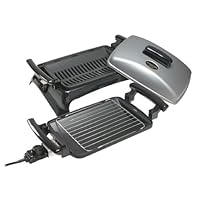George Foreman GR55 5-Grill - All new cooking machine from eSalton / George Forma can do almost everything except bake a cake. Depending on the attachments used (and the way they're attached), it transforms from a grill to a steamer-infuser to a roaster to a wok. Great for a beach cabin, a condo, or a small household, the possibilities are limited only by your imagination--think steamed tamales, toasted corn on the cob, fried rice, scrambled eggs, barbecued ribs, or self-basted leg of lamb surrounded by roasted potatoes, peppers, and other vegetables. The lid has a wide, easy-grip handle that stays cool even when the lid is not. Except for the heat probe, each piece is fully immersible, and the base is dishwasher-safe.