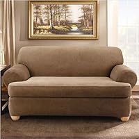 Click Here to see more reviews about: Sure Fit Stretch Stripe 2-pc. T-Cushion Loveseat Slipcover - Brown (T-Cushion Loveseat)