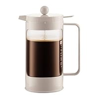 Offering a delightfully modern look in classic white, the 8-cup Bodum Bean French press coffee maker is more than just a looker. It features Bodum's patented new locking lid system to both help keep your coffee hot as well as prevent spills. The locking lid gives you total control over the flow of coffee--just press the lever situated above the handle to release liquid. When released, the lid automatically closes, locking in heat, freshness, and flavor.
