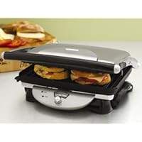 DeLonghi combines the cooking trends of today with retro design in this gleaming Italian sandwich maker. Softly rounded edges are handsomely paired with easy-to-clean, nonstick stationary cooking plates that provide two-sided grilling of favorite Panini combinations. The wattage is high to speed cooking time; an adjustable thermostat lets you customize the level - a lower temperature so cheese thoroughly melts or higher for a quick crisp of the bread. The hinged door adjusts in height to accommodate thin slices of sourdough or thick squares of focaccia. And for the health-conscious, little or no oils are absorbed thanks to the cooking plates that slant forward for oil or butter to drain into built-in channels. Other features include power-on and ready lights and a wrap-around cord. When not in use, the unit fastens shut and stands upright for convenient storage - though as delicious as these sandwiches are, this panini maker may very well end up a permanent fixture on your kitchen countertop.