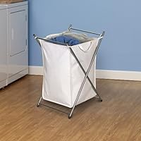 Household Essentials offers durable steel construction laundry room products that are not only attractive but built to withstand heavy use. It features a heavy duty machine washable canvas bag holds two loads of laundry. There are carrying handles on two sides of the bag for easy bag removal and carrying. The hamper quickly folds flat for storage when not in use. This hamper features a satin silver finish with a white canvas bag.. Setup dimensions are: 33-1/2-Inch high by 17-1/4-Inch wide by 19.375-Inch deep. Item #7013.
