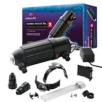 The Coralife Turbo-Twist 6x UV Sterilizer provides continuous ultraviolet sterilization. The Turbo -Twist provides crystal-clear aquariums by eliminating single-cell algae that cause algal blooms. It also decreases the possibility of a disease outbreak in your aquatic system by ensuring that disease-causing pathogens cannot reproduce. The sterilizer eradicates most harmful micro-organism on the initial pass through the chamber. The Turbo-Twist 6x treats up to 250 gallon saltwater or freshwater aquatic systems. The Turbo-Twist features a quartz glass sleeve with a 18 watt PL compact fluorescent U.V. Lamp. The lamp is surrounded by a revolutionary "turbo-twist" flow design to increase dwell time, which in turn increases efficiency. The filter's triple-treatment time fully utilizes all the available U.V. output of the lamp. The Turbo-Twist can be installed vertically outside the aquarium or sump using the included bracket and suction cup. It can also be installed in a horizontal position by attaching the bracket with screws to a fixed surface.Powercord: 10 ft. long